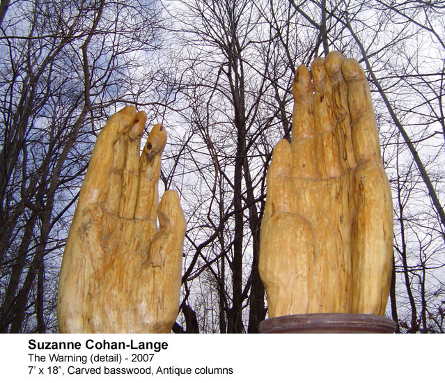 "The Warning" was done during one of the endless conversations our country has had about global warming and climate change. The giant hands either represent a literal "stop sign" ( or perhaps our ability to hold our hands in front of our faces and pretend not to see what is happening to the environment!)